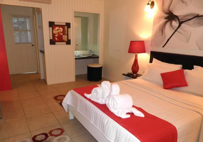 Green Palm Boutique Hotel, located just a few minutes from the airport and close to popular beaches like Pigeon Point and Store Bay, making it a convenient base for exploring Tobago’s main tourist area. It offers around 35–40 air-conditioned rooms (including some with kitchenettes), along with amenities such as a pool, restaurant, bars, spa, small gym, and free Wi-Fi, giving good value for its price range . Guests generally appreciate the friendly staff, cleanliness, and central location near nightlife and dining.